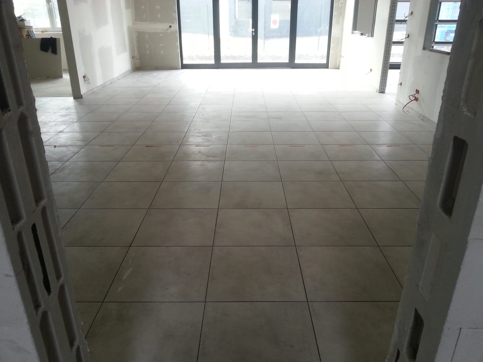 Im Zuge einer Generalsanierung erfolgte die fachgerechte Instandsetzung des Untergrunds sowie die anschließende Fliesenverlegung. Zur Kostenoptimierung wurde auf einen kompletten Estrich-Rückbau verzichtet: Stark beschädigte Teilbereiche wurden erneuert und Risse in der Restfläche kraftschlüssig mit Epoxidharz verschlossen. Als Oberbelag wurden moderne Bodenfliesen in Betonoptik verlegt.